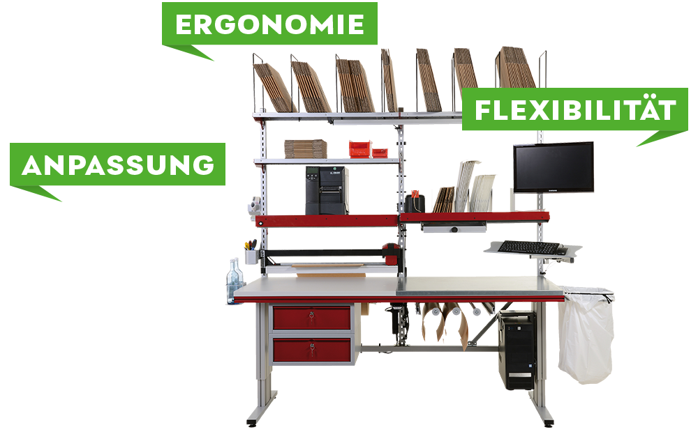 - Modular aufgebaute, anpassbare Packtischsysteme