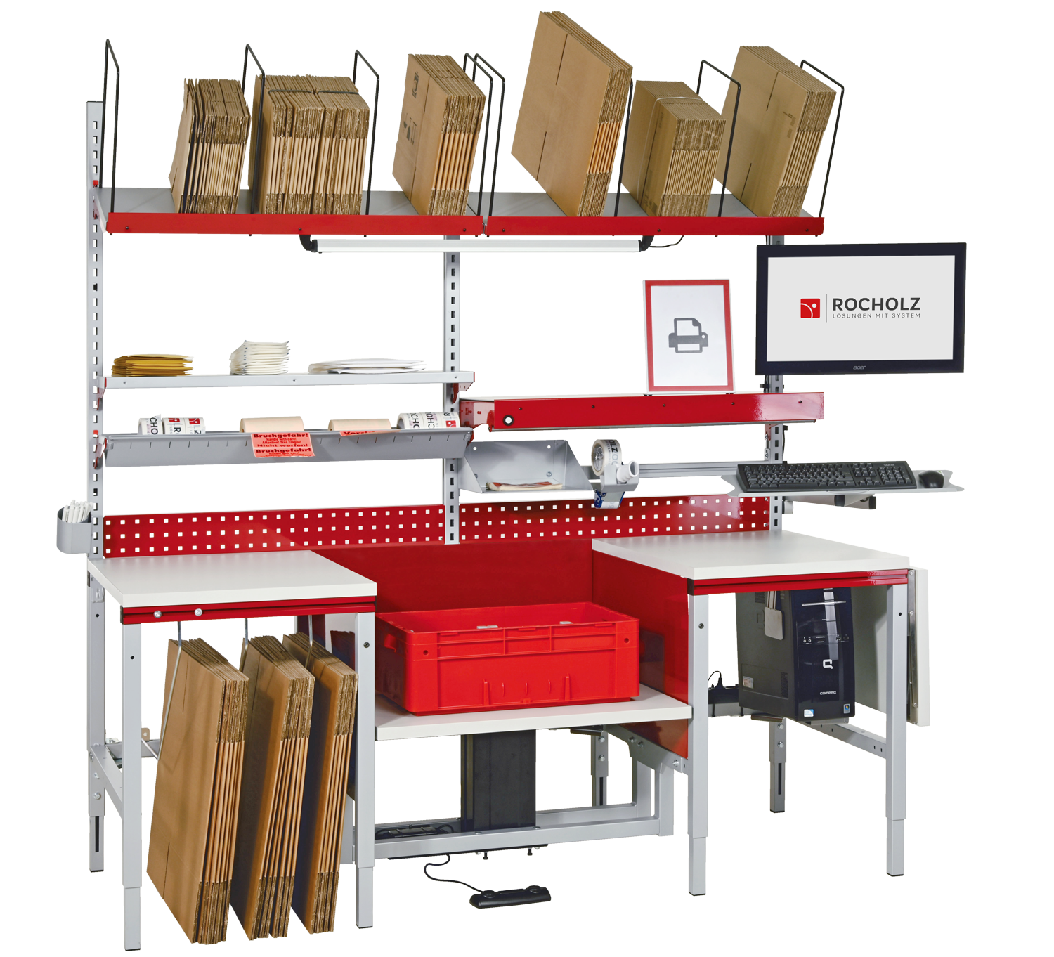 - The height adjustability of the Rocholz mounting profiles enables even more individualised ergonomic adjustment, both to the packaging material and to the person.